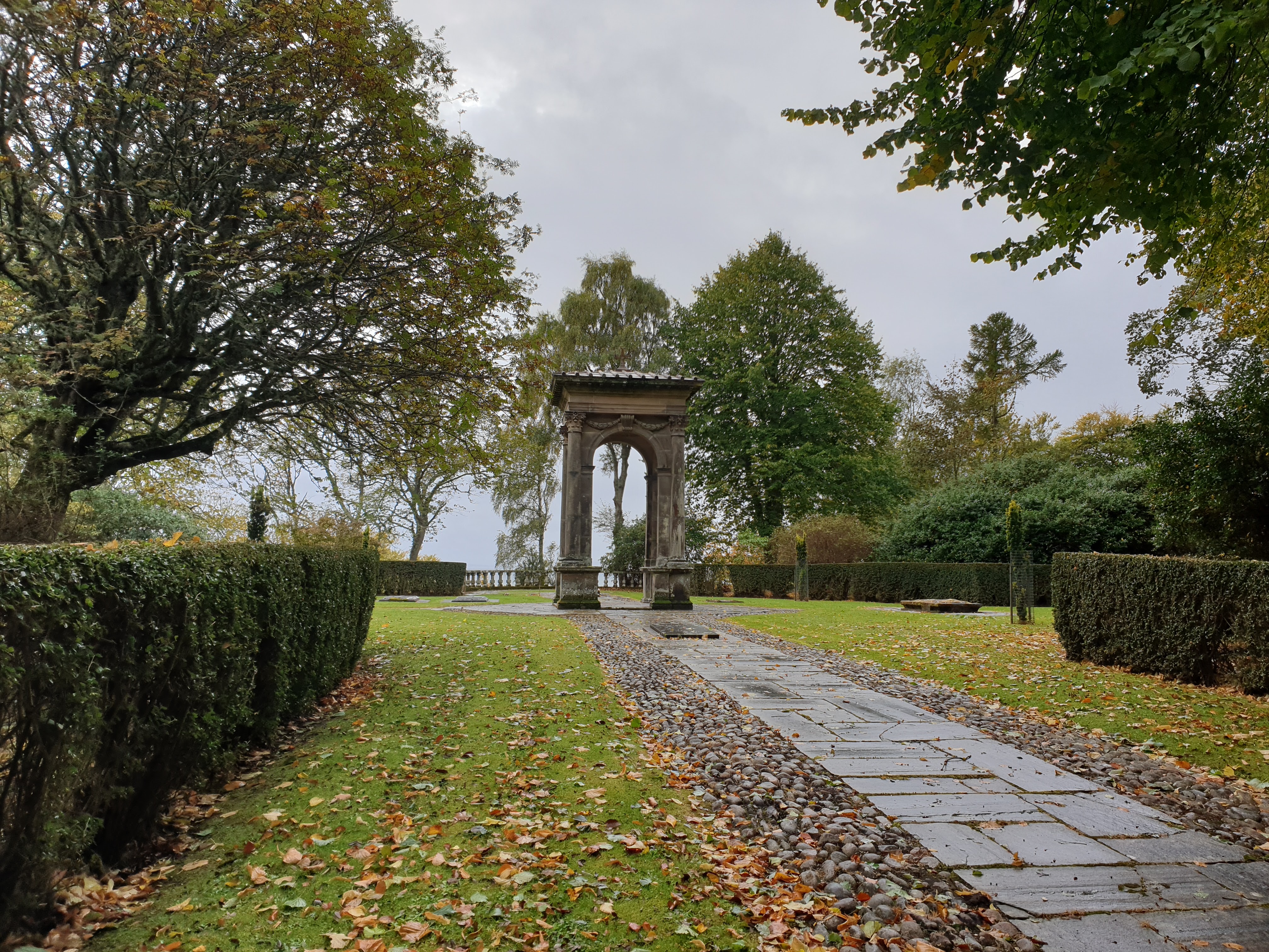 Walking away from the castle, the path branches off the right before the car park. Another short path revealed a gated off monument and garden.