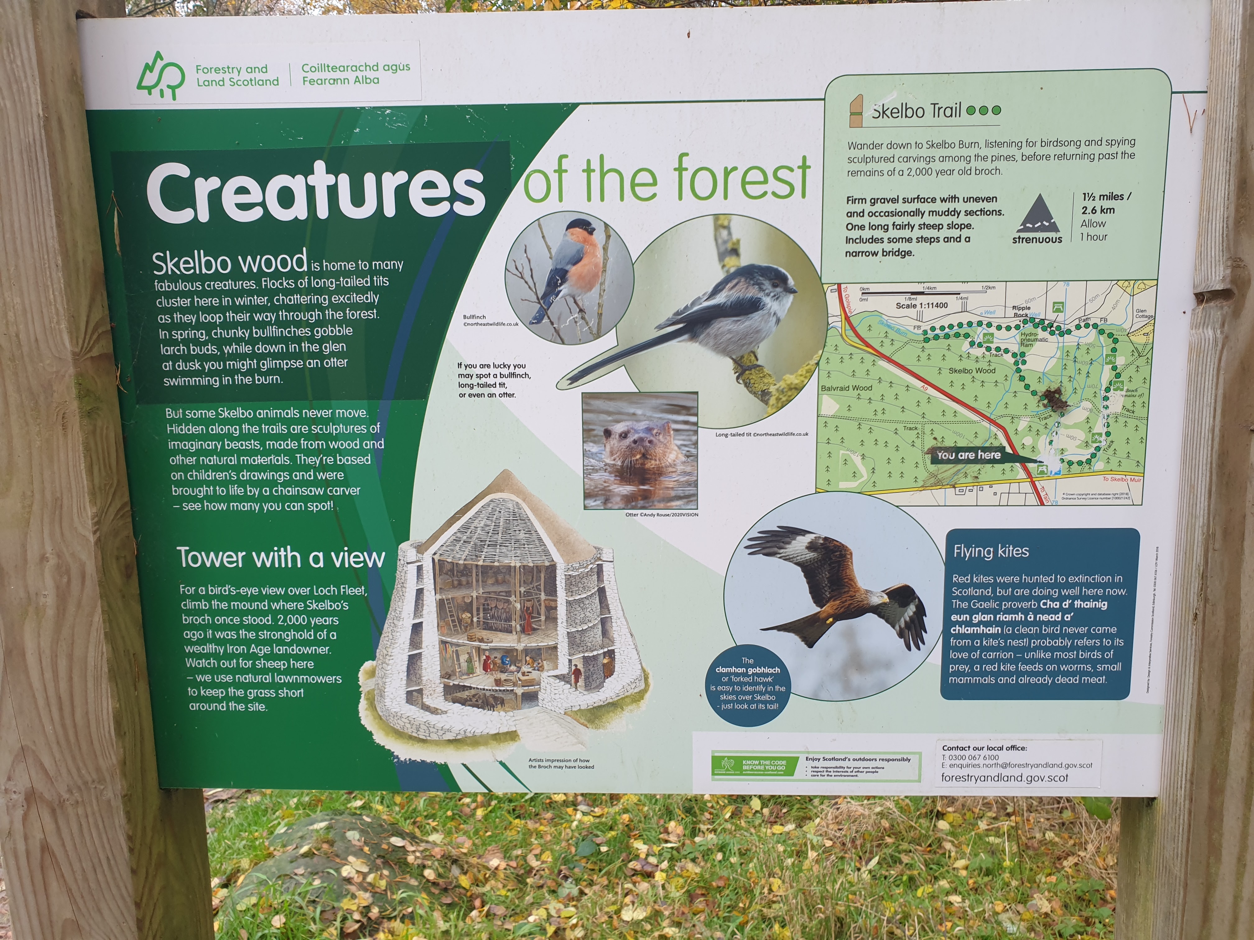 Once there, there’s a nice sized car park and when we arrived, there was only one other car there. Like most these Forestry and Land woods, it has an information board in the car park letting you know the most popular local wildlife (long-tailed tits in the winter and chunky bullfinches in the spring) and marked walking tails. At Skelbo, the only marked trail is 1.5miles for which it recommends allowing one hour. Our tracker recorded it at 1.7 and we were back in the car after 45mins.