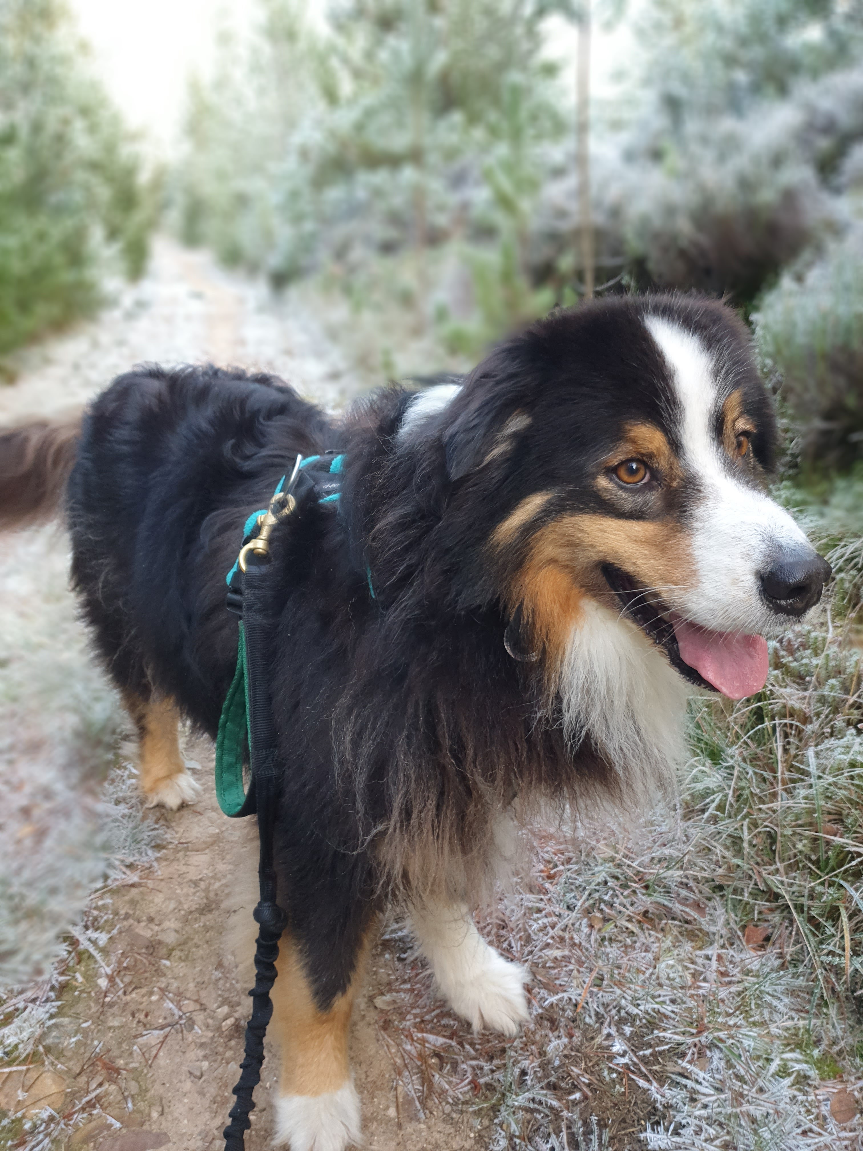 As we followed the path through the trees the dogs were having a great time. Despite the heavy frost and regular frozen puddles, the ground was easy to walk on and even with their persistent pulling, the boys didn’t manage to pull is over. They did spend most the walk with their noses to the ground and although something certainly kept them engaged, it wasn’t enough to make them unmanageable.